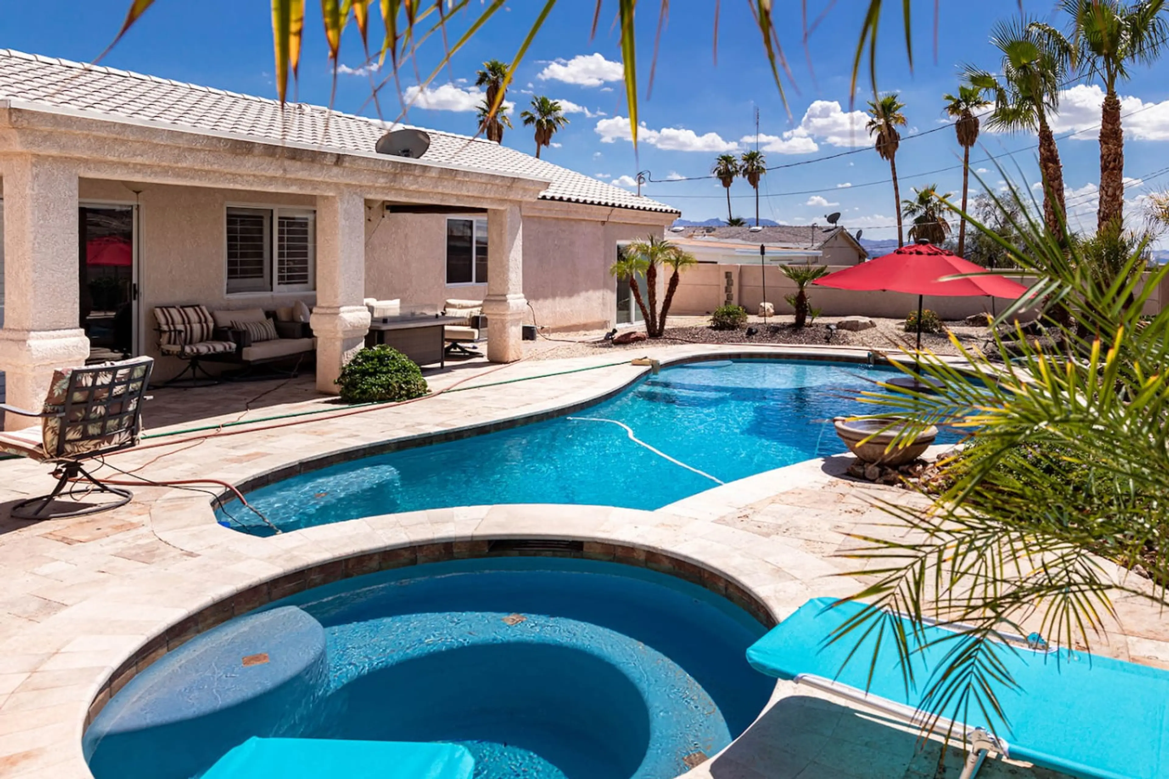 Escape to our 4-bedroom Lake Havasu retreat, perfect for families and groups! Sleeping 14, this spacious getaway offers a private heated pool, relaxing spa, and an epic game room for all ages. Lounge in the sun, grill outdoors, or unwind under the stars—this home has it all. Located just minutes fro...