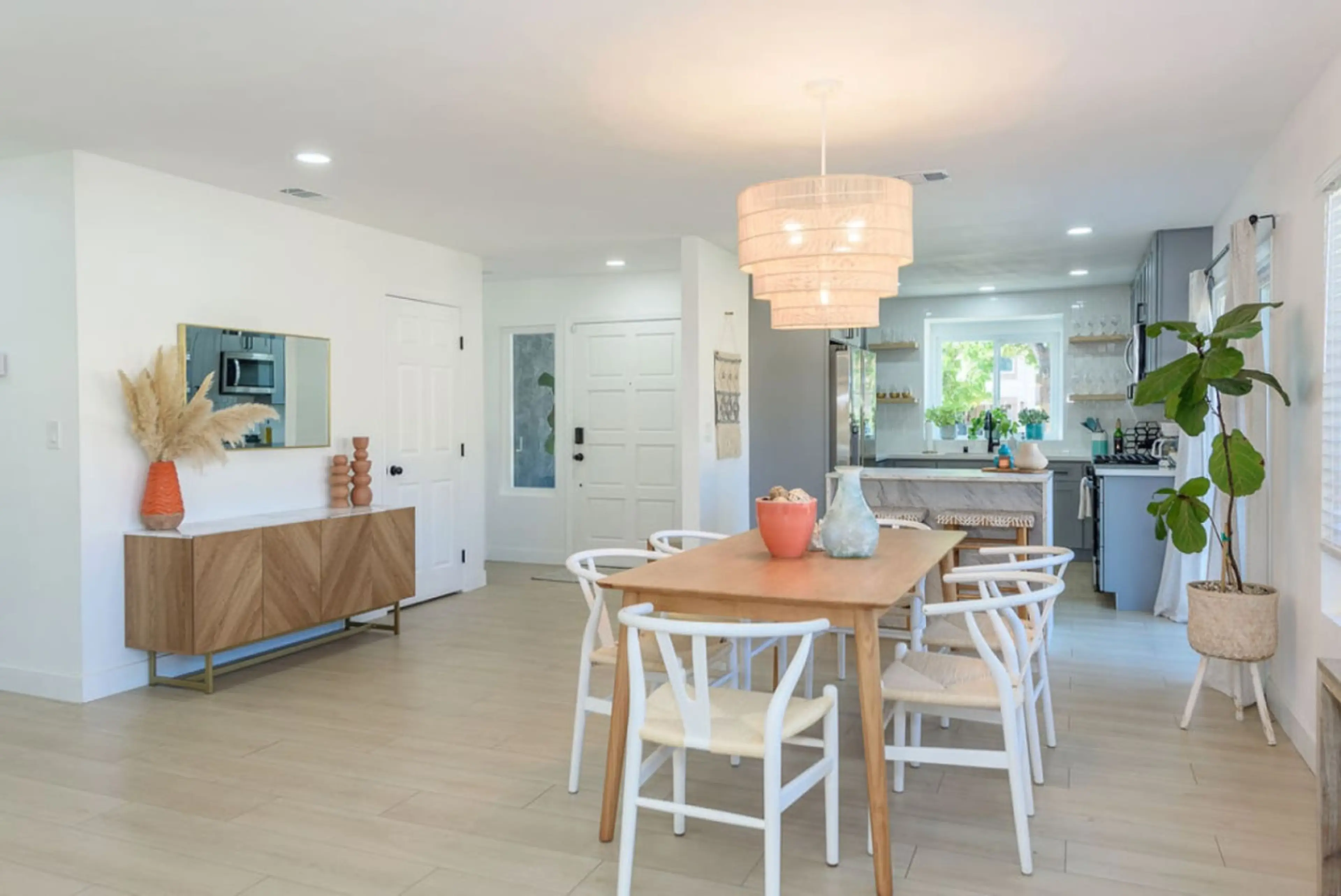 Fully renovated open concept 3bd/2ba home with coastal decor, and touches of boho & glam accents, offering a warm/welcoming, cozy vibe. Enjoy outdoor living in the large side/back yard, which includes a grill, 6-person dining table, couch & fire pit. Sitting on a corner lot on a neighborhood street...